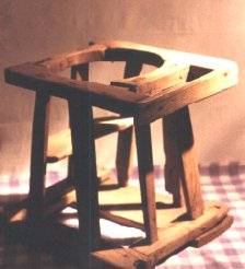 - Trona abatible. Madera torneada con dibujos y